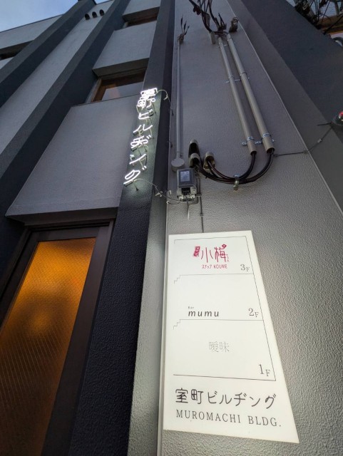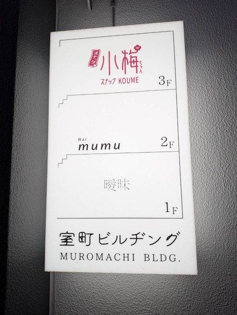 OPEN情報「室町ビルヂング」 「室町ビルヂング」がオープンしました♪♪♪ 夜喫茶、スナック、バーが入るオシャレな飲食複合ビル ☆☆☆ 1F 夜喫茶 「曖昧 AIMAI」 コーヒー、ビール、デザート、酒の肴あり 2F 立ち飲みワインバー 「mumu」17:00-1:00 定休日:月曜 3F スナック「小梅ちゃん」20:00-2:00 カラオケ有ります 0次会から二次会、三次会まで楽しく飲めるお店ばかりです!! 是非お立ち寄り下さーい!! 所在地:京都市下京区室町通高辻上る山王町575