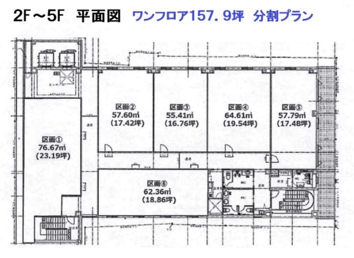 - 烏丸丸太町エリア 烏丸通、車屋町通り面す 新築オフィスビル 2階~5階 各6区画分割プラン(23.19坪・17.42坪・16.76坪・19.54坪・17.48坪・18.86坪)