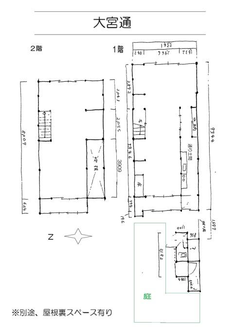 - 世界遺産「東寺」東門前の町家一棟貸し 1階54㎡、2階46.8㎡、離れ5.22㎡ 他屋根裏スペース、庭あり(面積は現地テープ測量による) 業種はご相談下さい 火袋、台所竈、通り土間部分は現状維持の活用をお願いします